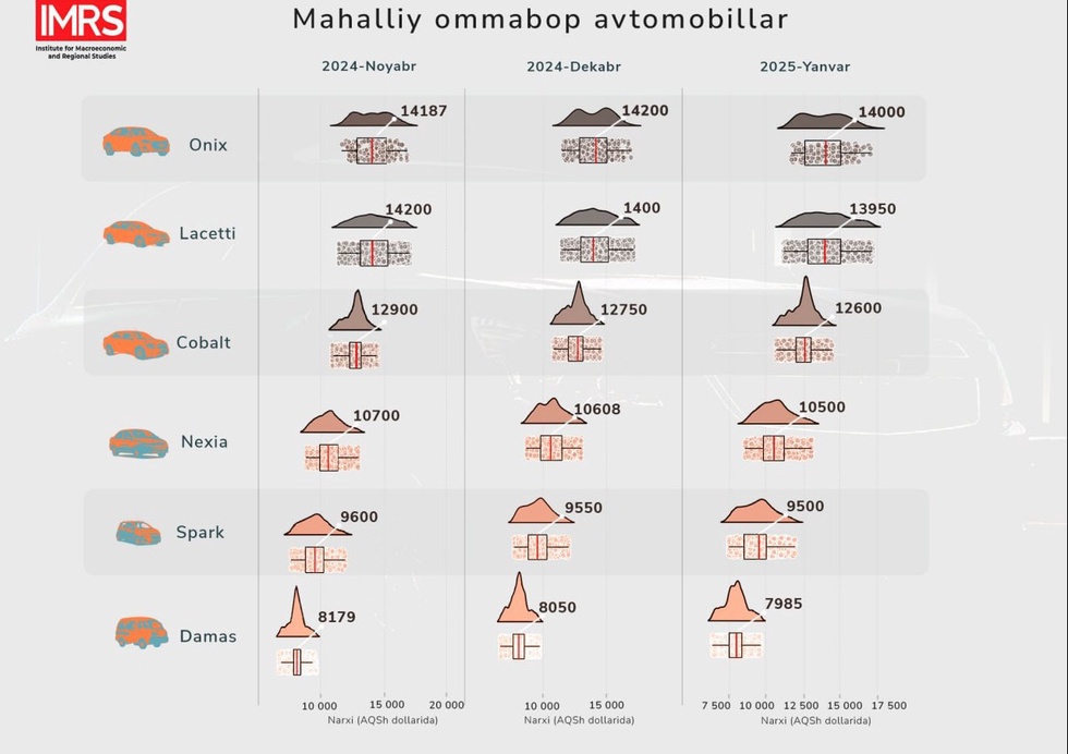 Өзбекстан Республикасы Министрлер Кабинеті қасындағы Макроэкономикалық және аумақтық зерттеулер институтының (МАЗИ) сарапшылары 2025 жылдың январь айында қайталама базардағы автокөліктердің бағасына талдау жасады.