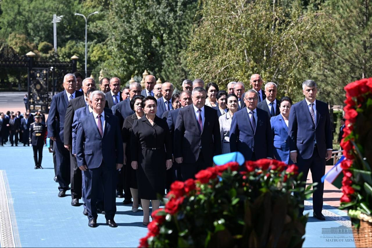 Рәсімге Өзбекстан Республикасы Олий Мажлисі, Президент Әкімшілігі, Министрлер Кабинеті, министрліктер мен мекемелер, қоғамдық өкілдер қатысып, Тұңғыш Президентіміздің ескерткішіне гүл шоқтарын қойды.