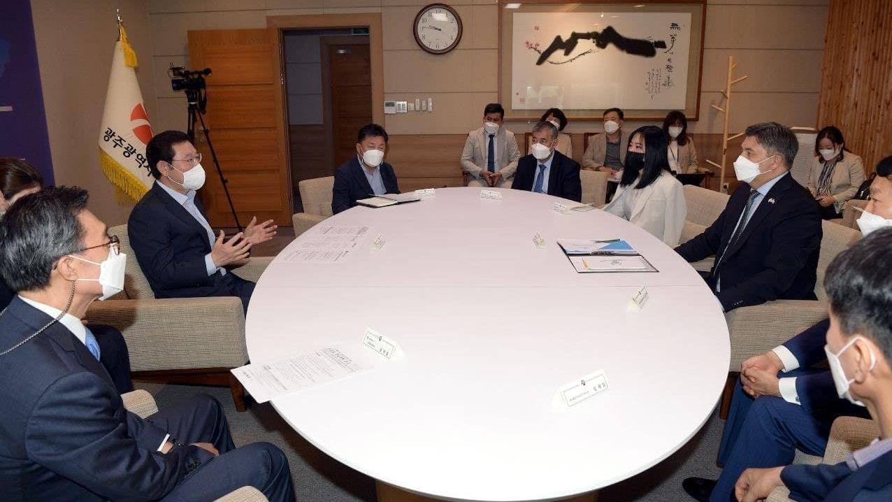 Сапар барысында министр Нозим Хусанов және Корея Республикасының Квангжу қаласының мэрі Ли Янг Собпен кездесу өткізілді.