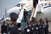 Ташкент әуежайында мәртебелі мейманның құрметіне екі елдің мемлекеттік тулары көтеріліп, құрметті қарауыл сап түзеді.