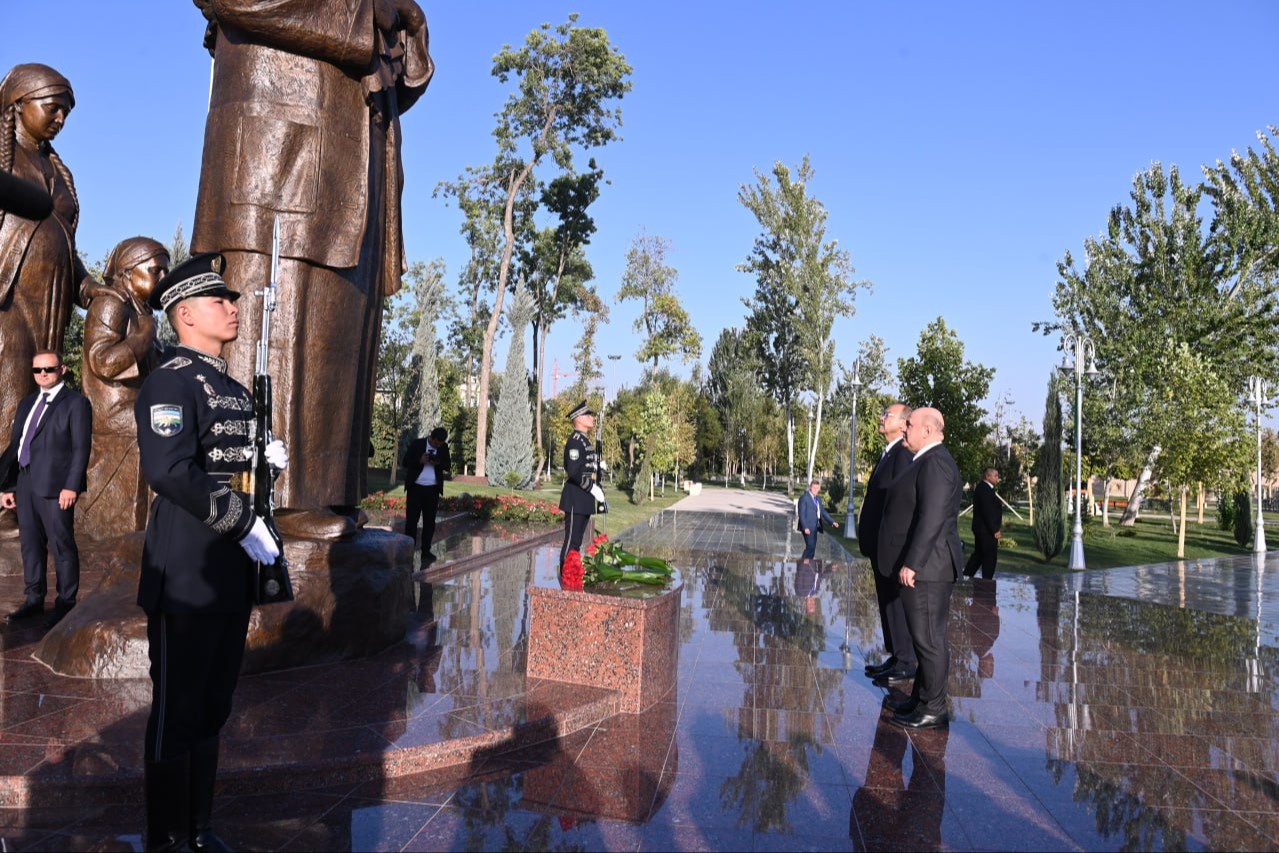 Жоғары мәртебелі қонақ қаза тапқан сарбаздарды еске алды. Соғыста бес ұлынан айырылған Зулфия әже Закироваға арналған «Матонат мадхияси» ескерткішіне гүл шоғын қойды. Сондай-ақ, Өзбекстанның соғысқа қатысу тарихына арналған Даңқ музейін аралап, Құрметті қонақтар кітабына өз тілектерін жазып қалдырды.