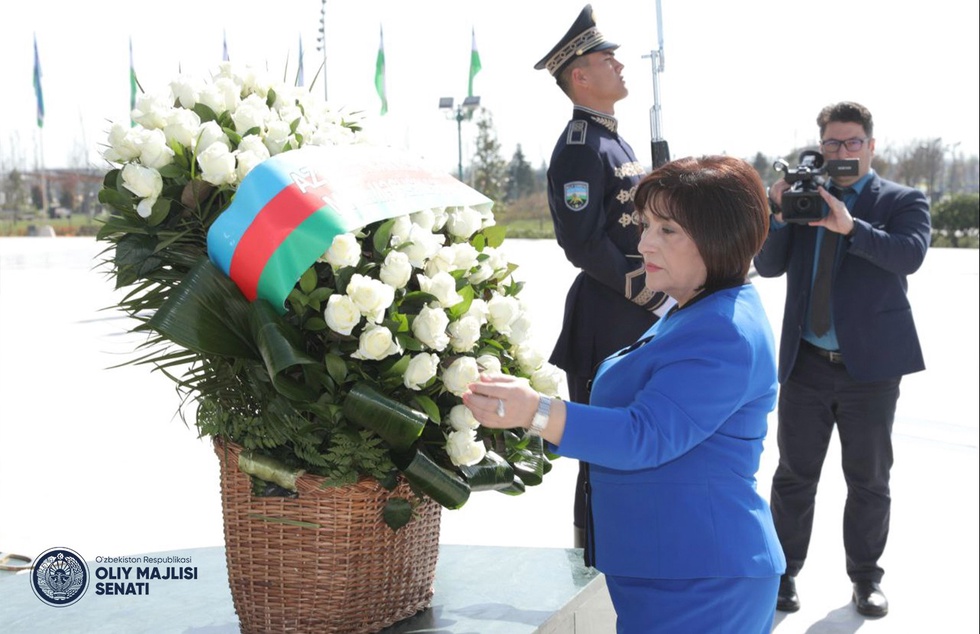 Әзірбайжан Республикасы Ұлттық Мәжілісінің төрайымы С.Гафарова «Жаңа Өзбекстан» саябағындағы Тәуелсіздік монументіне гүл шоқтарын қойды.