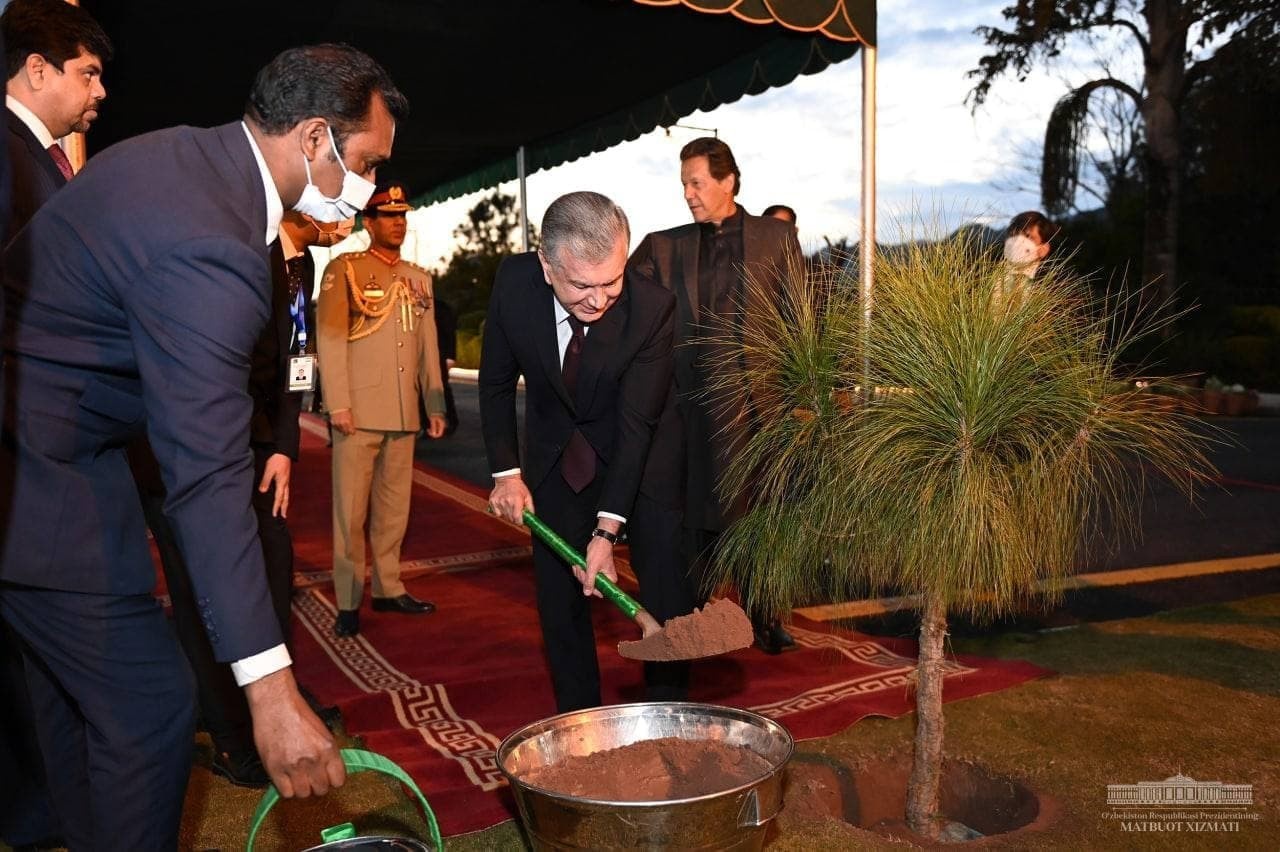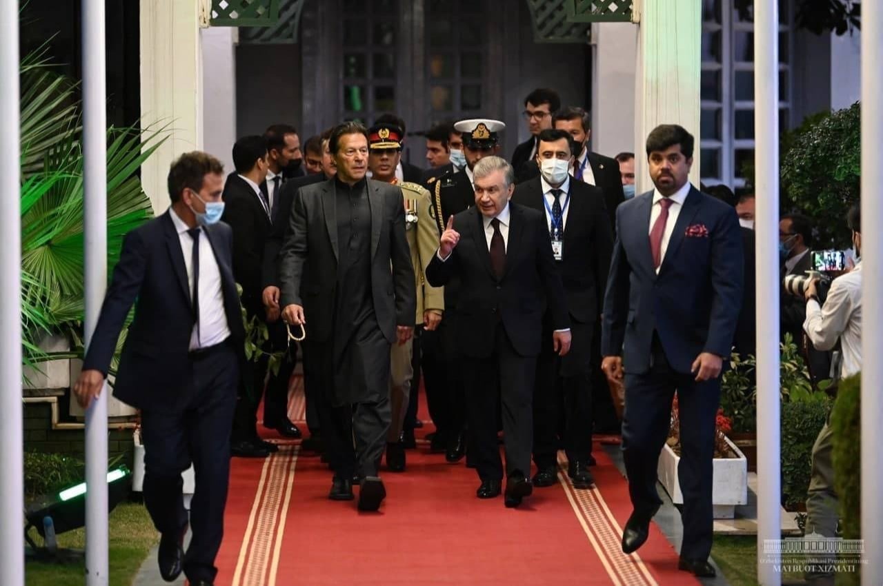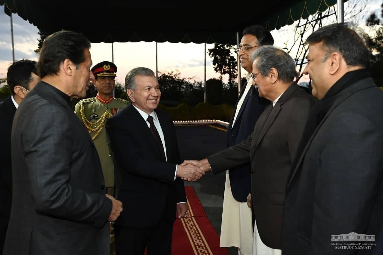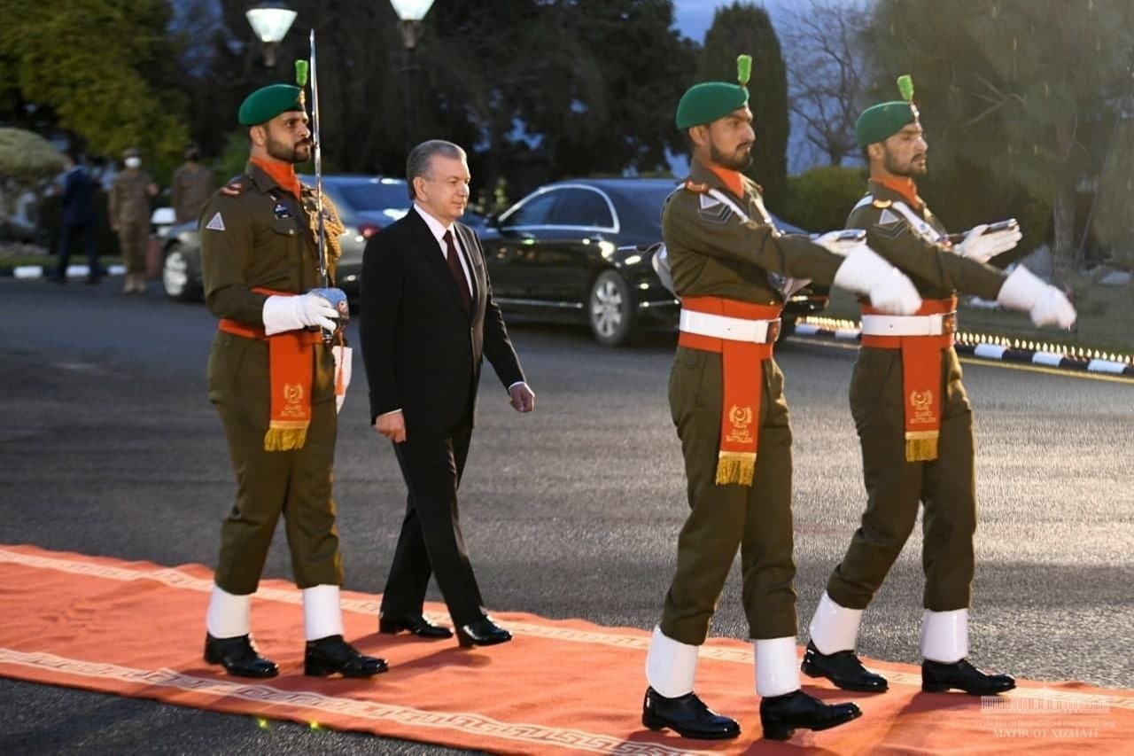 Онда, Шавкат Мирзияев пен Имран Хан сап түзеген құрметті қарауыл алдынан өтіп, тұғырға көтерілді. Өзбекстан мен Пәкістанның мемлекеттік әнұрандары шырқалды.