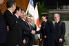 Екі елдің мемлекеттік әнұрандары шырқалды. Көшбасшылар құрмет қарауылының алдынан өтіп, ресми делегациялар мүшелерімен сәлемдесті.