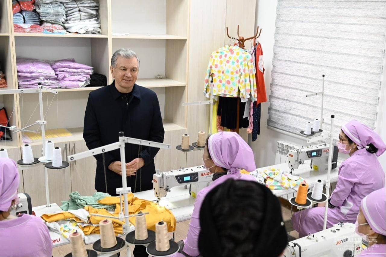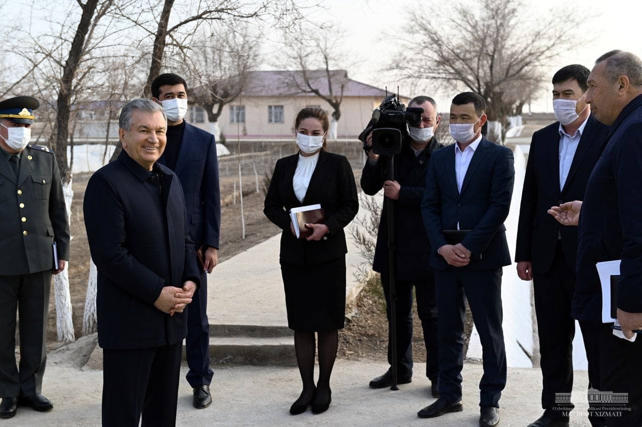 Шавкат Мирзияев ауылдағы құрылыс жұмыстарымен танысып, халықпен сұхбаттасты.