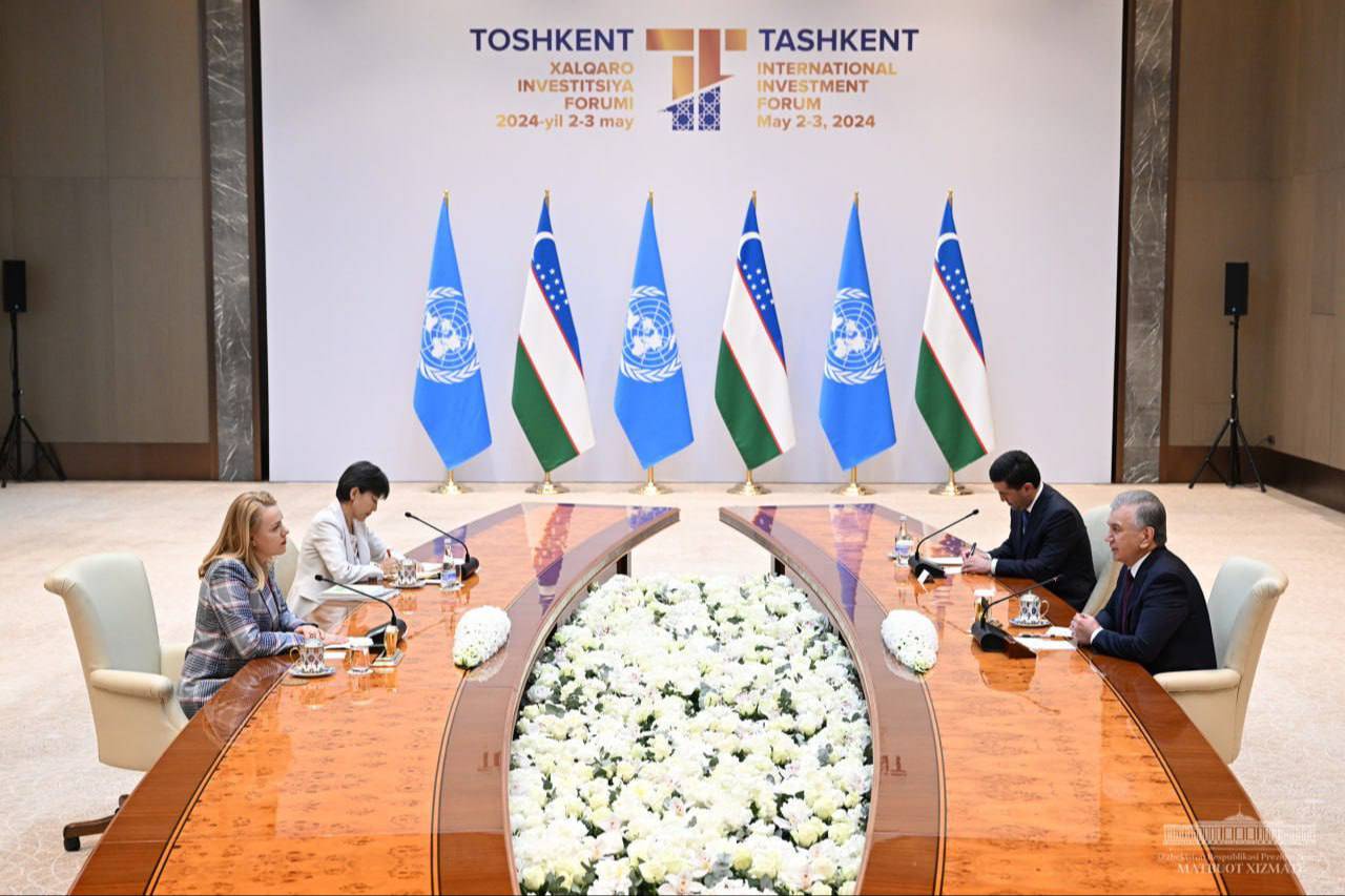 Аймақтық және ұлттық жобаларды жүзеге асыру және Өзбекстан Республикасы Президентінің өткен қараша айында Бакуде өткен БҰҰ-ның Орталық Азия экономикаларына арналған арнайы бағдарламасының (СПЕКА) бірінші саммитінде алға қойған бастамаларын жүзеге асыру барысы талқыланды.