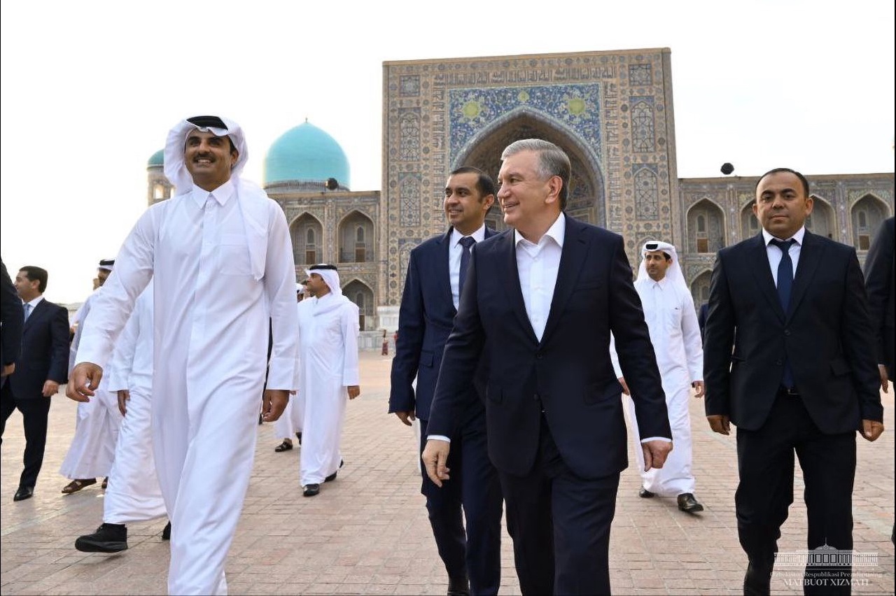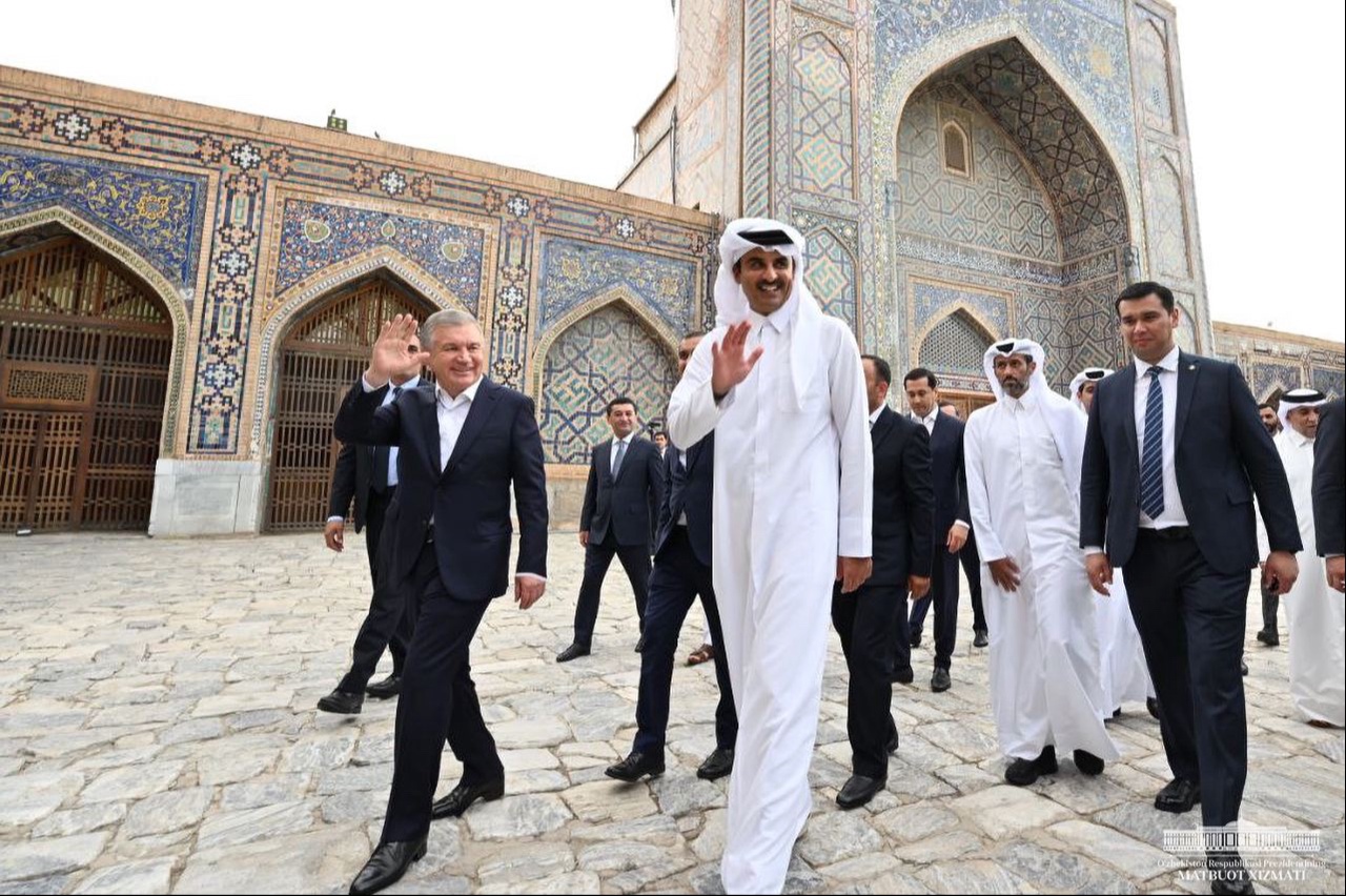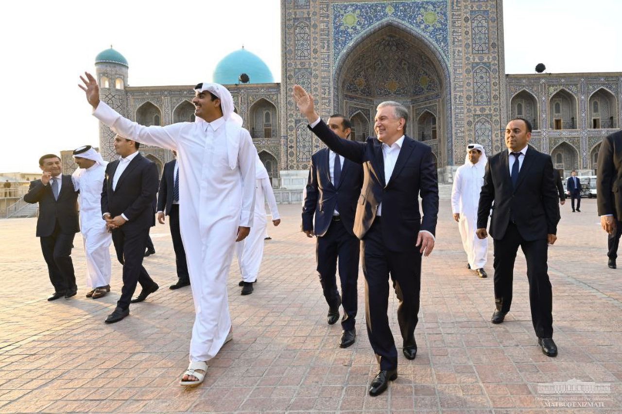Жоғары мәртебелі қонаққа медреселердің құрылыс тарихы, өрнек және таңбалардың мән-мағынасы, алаңда жүргізілген жөндеу жұмыстары туралы айтылды. Қатар Әмірі медреселерді қызыға тамашалады.