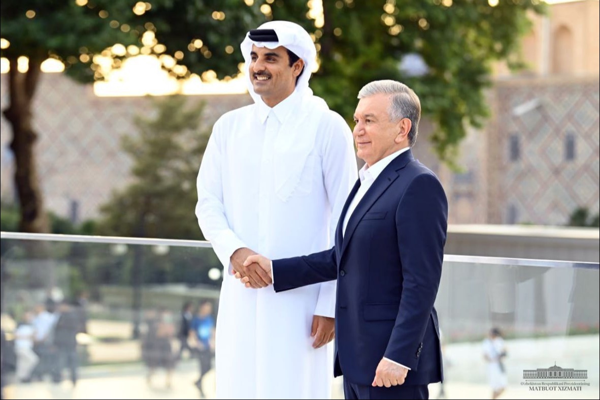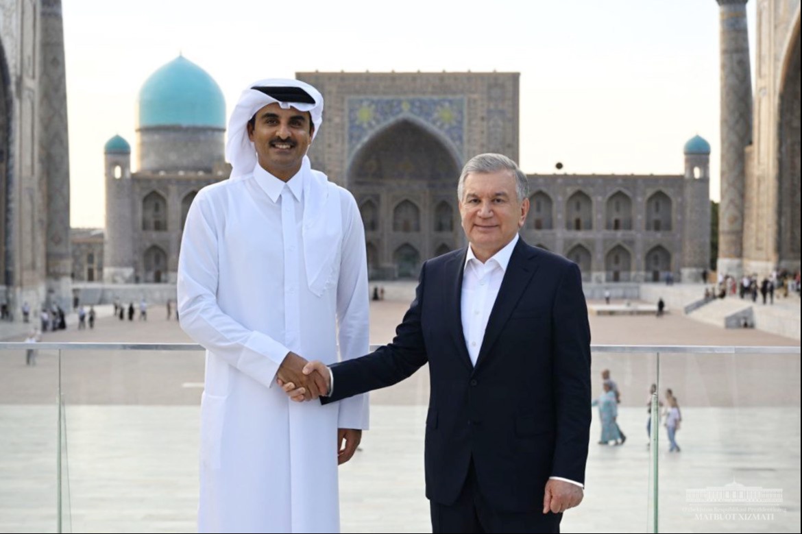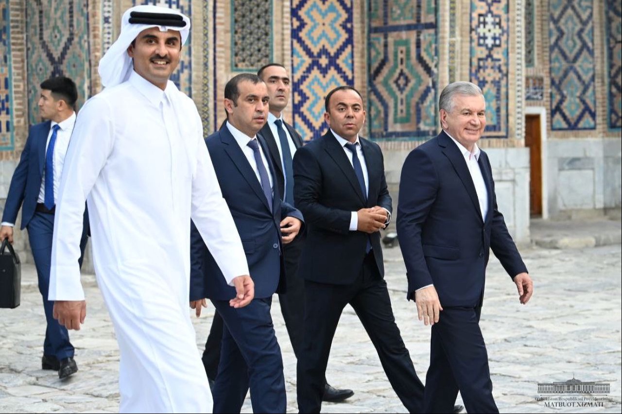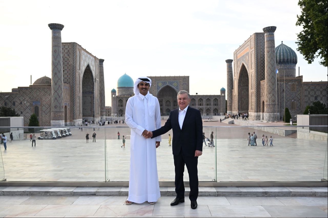Жоғары мәртебелі қонаққа медреселердің құрылыс тарихы, өрнек және таңбалардың мән-мағынасы, алаңда жүргізілген жөндеу жұмыстары туралы айтылды. Қатар Әмірі медреселерді қызыға тамашалады.