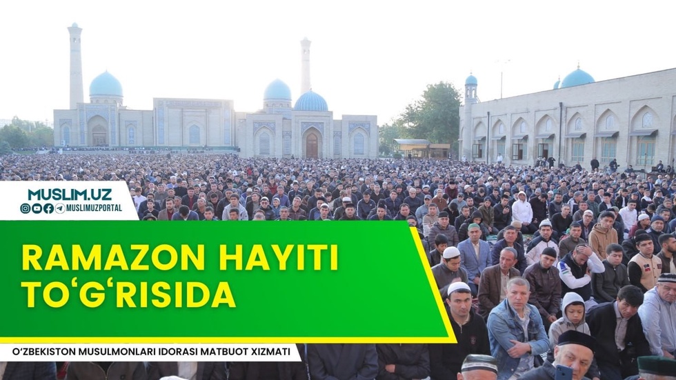Өзбекстан Мұсылмандары кеңсесі Ғұламалар Кеңесінің фиқи ережелер, фалаки есеп-қисаптар мен астрономиялық байқауларға сүйеніп үстіміздегі жылы елімізде Рамазан айт мейрамы 2024 жылдың 10 апрель сәрсенбі күнге дұрыс келуі күтіліп жатқанын хабарлады.