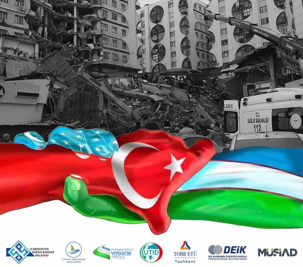 Түркияның оңтүстік-шығыс  облыстарында болған күшті жер сілкінісі салдарынан көпеген адамдар қаза тапқаны және үлкен шығынға ұшырағанына орай Өзбекстанның Сауда-өнеркәсіп палатасы мен «Жастар – біздің болашағымыз» қоры тарапынан бауырлас түрік халқына Өзбекстандағы екі елдің кәсіпкерлері  UTID, DEIK, MUSIAD атынан  гуманитарлық көмек жіберу ұйымдастырылуда.
