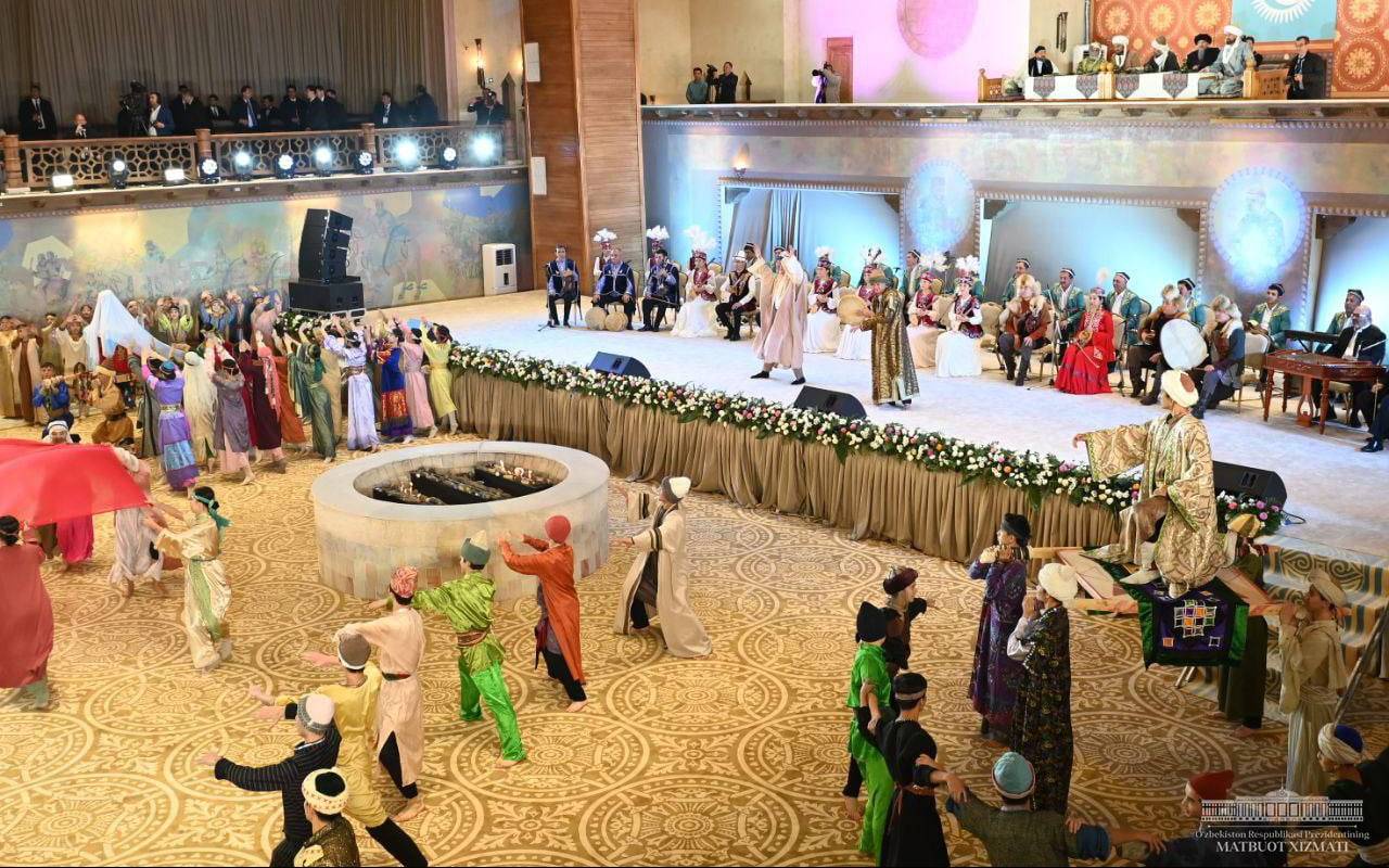 Жоғары мәртебелі меймандардың келуі құрметіне осы жерде Өзбекстан Республикасы Президентінің атынан қабылдау рәсімі өтті.