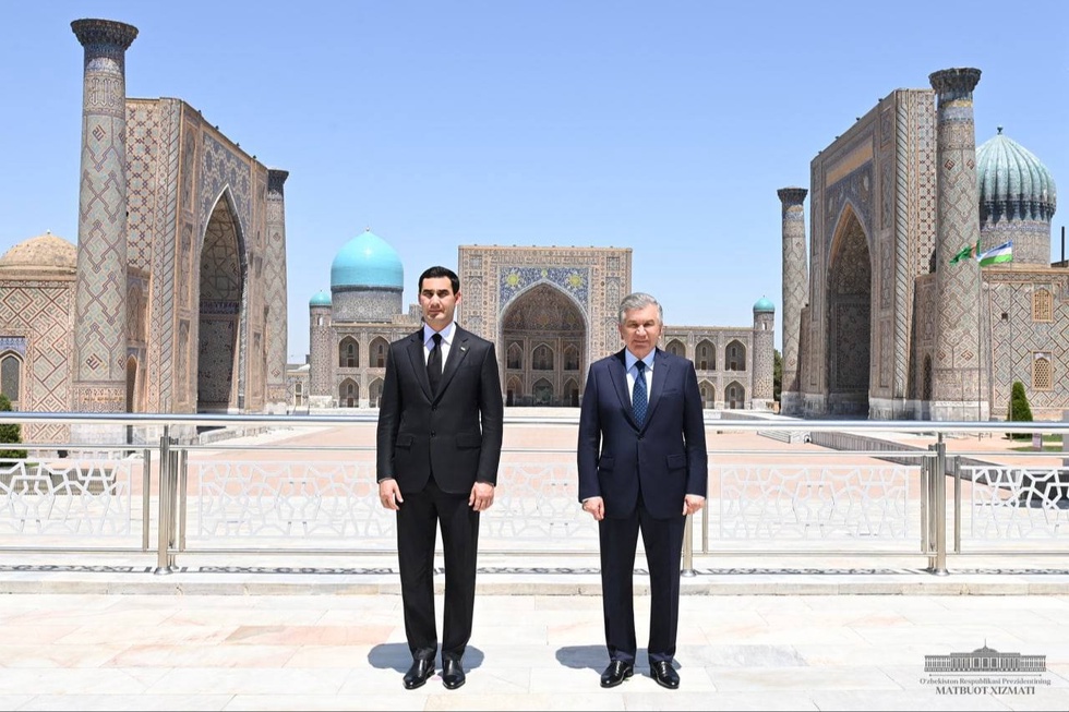 Шавкат Мирзияев пен Сердар Бердімұхамедов осында естелік үшін суретке түсті.