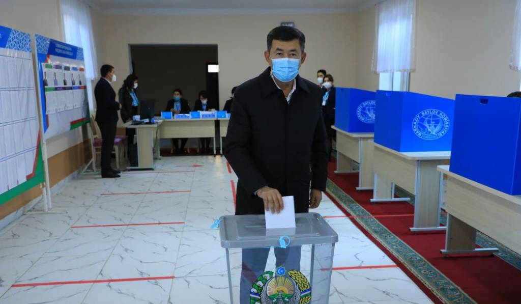 Ташкент облысының әкімі Даврон Хидоятов өзі лайықтыдеп білген кандидатқа дауыс берді.