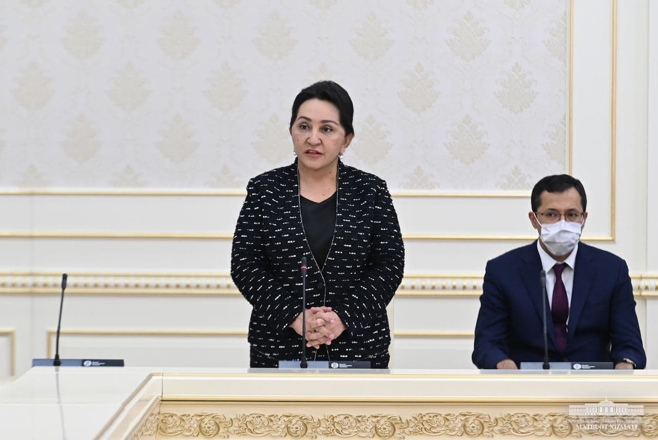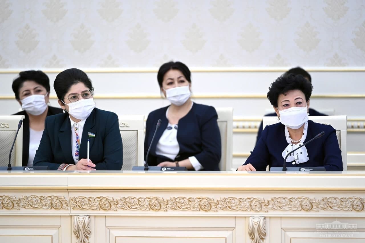 Бүгінгі жиында Мемлекет басшысы әйелдерді әлеуметтік қорғау мәселелеріне ерекше назар аударды. 2022 жылдың 1 қыркүйегінен бастап жеке секторда жұмыс істейтін әйелдерге бала тууына байланысты мемлекеттік жәрдемақы жүйесін құру тапсырылды. Биылғы жылы бюджеттен 200 миллиард сум, 2023 жылы 1,7 триллион сум бөлінетіні атап өтілді.