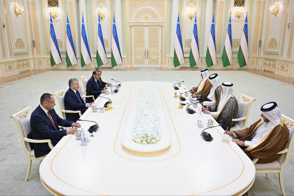 Учрашув аввалида Шайх Жавъан бин Ҳамад Ол Соний Ўзбекистон етакчисига Қатар Амири Шайх Тамим бин Ҳамад Ол Сонийнинг саломи ва энг эзгу тилакларини етказди.