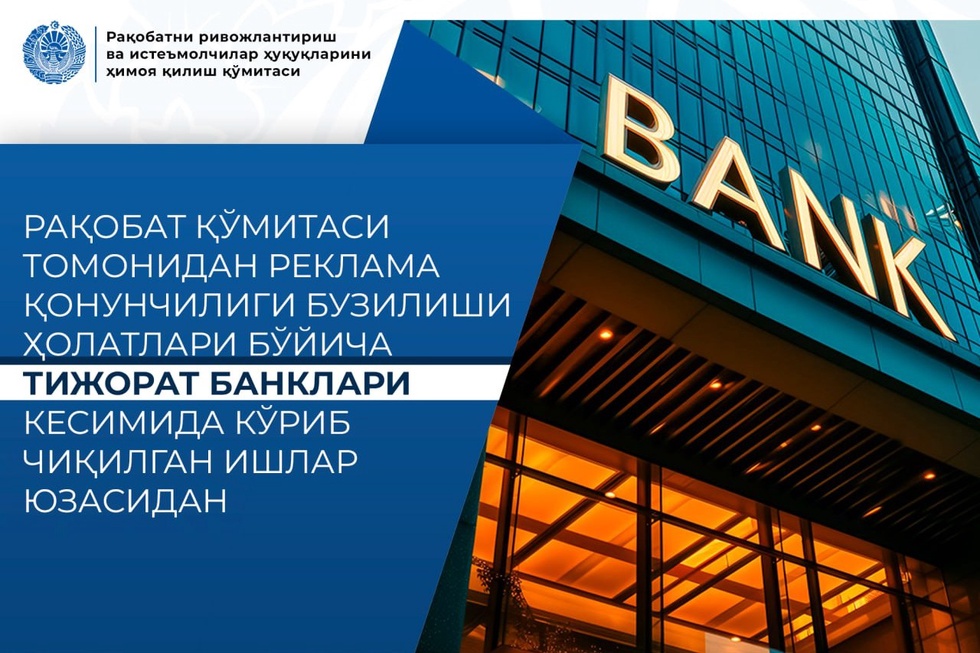 Рақобат қўмитаси томонидан ўрганиш ишлари олиб борилди ва 15 дан ортиқ тижорат банклари томонидан йўл қўйилган қонунбузилиш ҳолатлари юзасидан маълумотлар (Республика ва Қўмитанинг ҳудудий органлари кесимидаги ҳолатларга нисбатан) тегишли чоралар кўрилиши таъминланган.