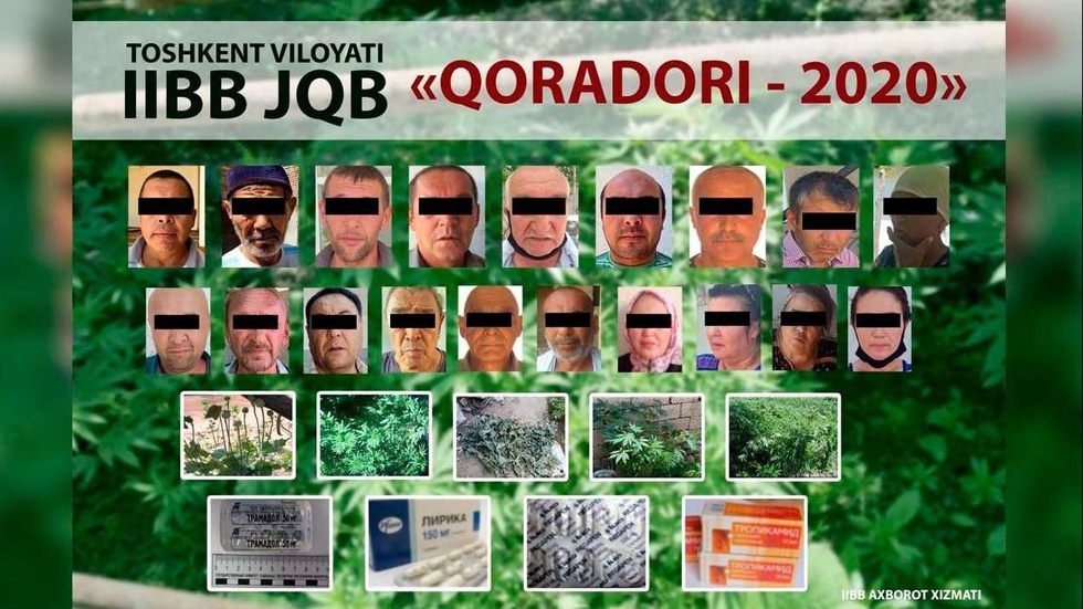 Жумладан, Жиноят қидирув бошқармаси ҳамда соҳавий хизмат ходимлари томонидан «Қора дори-2020» кенг қамровли тадбири давомида, таркибида наркотик моддалари бўлган ўсимликларни етиштириш билан боғлиқ 100 та ҳолат аниқланиб, 715 квадрат метр ер майдонидаги кўкнор ва каннабис каби гиёҳвандлик ўсимликлари йўқ қилинди.