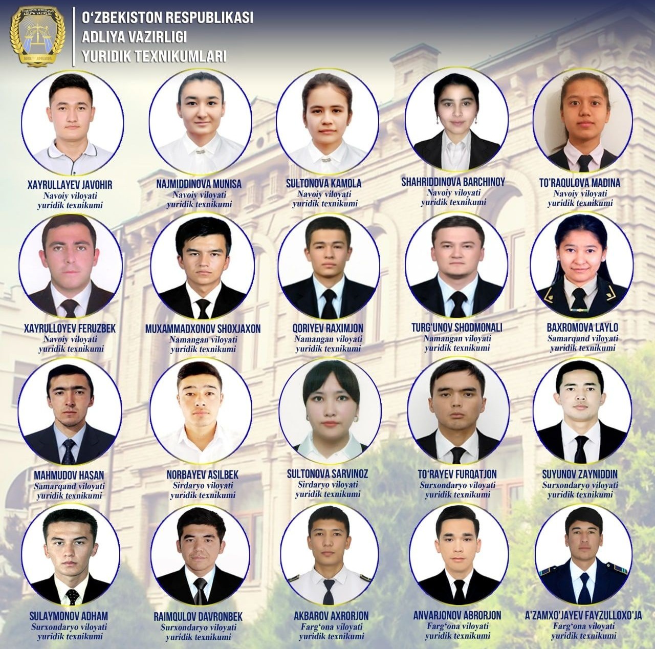 2022 йили Aдлия вазирлиги юридик техникумларининг йўлланмани қўлга киритган 51 нафар битирувчиси суҳбат асосида Тошкент давлат юридик университети талабаси бўлди.