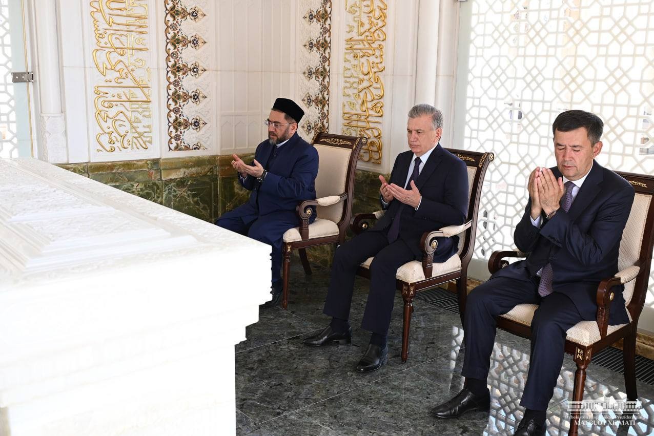 Давлатимиз раҳбари дастлаб Имом Бухорий мақбарасини зиёрат қилди. Қуръон тиловат этилиб, дуо ўқилди.