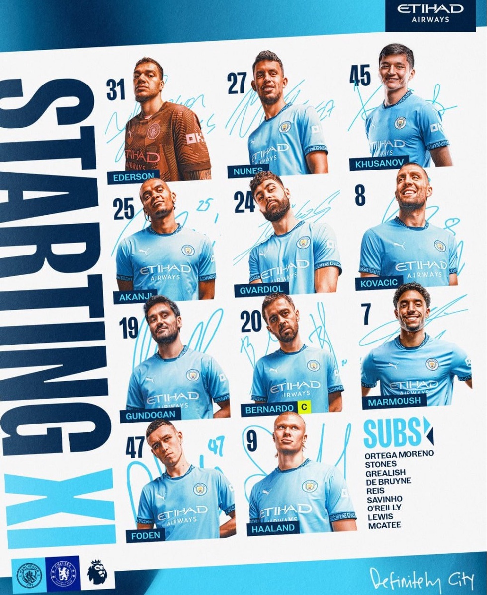 31.Эдерсон Мораес, 24.Йошко Гвардиол, 25.Мануэль Аканжи, 27.Матеус Нуньес, 45.Абдуқодир Ҳусанов, 7.Омар Мармуш, 8.Матео Ковачич, 19.Илкай Гюндоган, 20.Бернарду Силва, 47.Фил Фоден, 9.Эрлинг Холанд.
