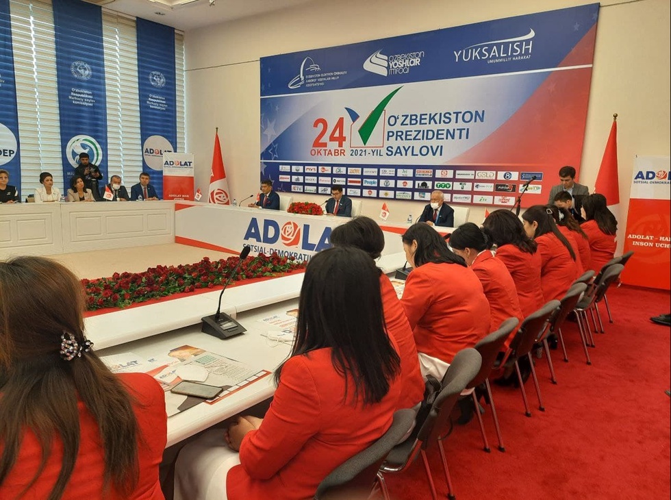 Президент сайловига тайёргарлик кўриш ва уни ўтказиш билан боғлиқ барча жараёнларни миллий сайлов қонунчилиги ва халқаро сайлов стандартларига биноан очиқ, ошкора ва шаффоф ўтказиш мақсадида ташкил этилган халқаро медиа-холлда «Адолат» СДПнинг Ўзбекистон Республикаси Президенти сайловига тайёргарлик жараёнлари ва амалга оширилган ишлар хусусида брифинг бўлиб ўтди. Унда партиянинг марказий сайлов штаби аъзолари, ҳудудий штаблардан вакиллар, партия фаоллари, оммавий ахборот воситалари ходимлари иштирок этди.