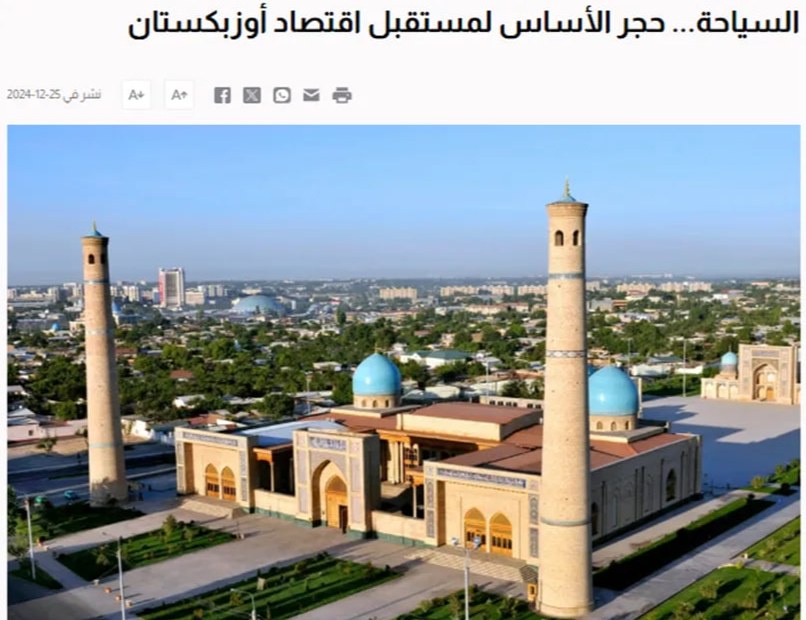 «Ўзбекистонда туризм соҳаси узлуксиз ўсишда давом этмоқда, –дейилади мақолада. – Мамлакат 2022 йилда 5,2 миллион халқаро сайёҳни қабул қилган бўлса, 2023 йилда ушбу кўрсаткич 6,7 миллионга яқин бўлди».