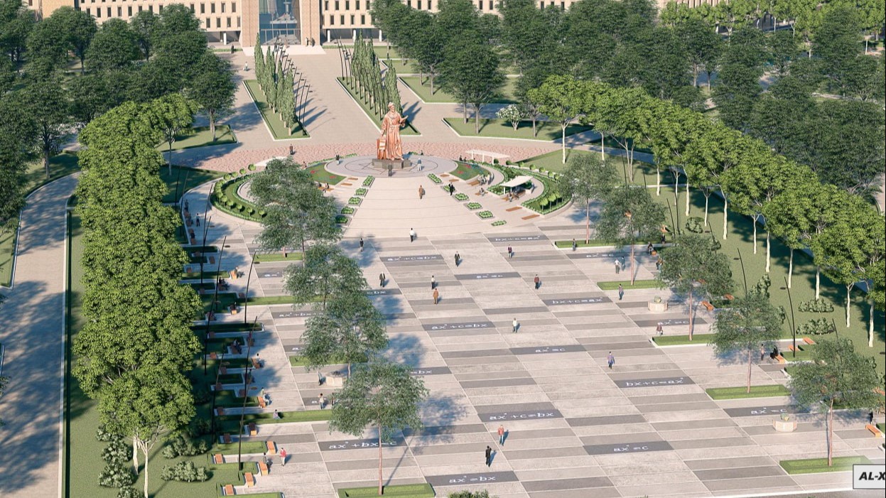 Лойиҳа бўйича мажмуада буюк аллома, алгоритм асосчиси ал-Хоразмийнинг баландлиги 30,5 метрлик муҳташам ҳайкали қад ростлайди.