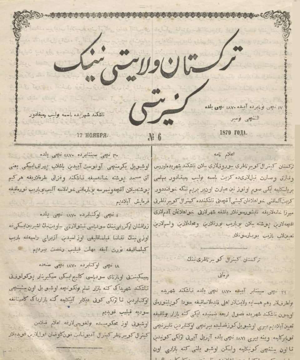 Газета Туркистон генерал-губернаторлиги девонхонасининг босмахонасида ҳафтасига икки марта чоп этилган, бир дона нусхасининг нархи 5 тийинни ташкил етган. Дастлаб газета маҳаллий муаллифларнинг мақолаларига муҳтож бўлган ва аҳолини ҳамкорликка ундаш учун ҳар бир ҳарф учун 1 тийиндан тўлаган. Aгар мақолада 300 сўз бўлса, муаллиф 3 сўм миқдорида гонорар олган - ўша даврларда бу муносиб пул эди!