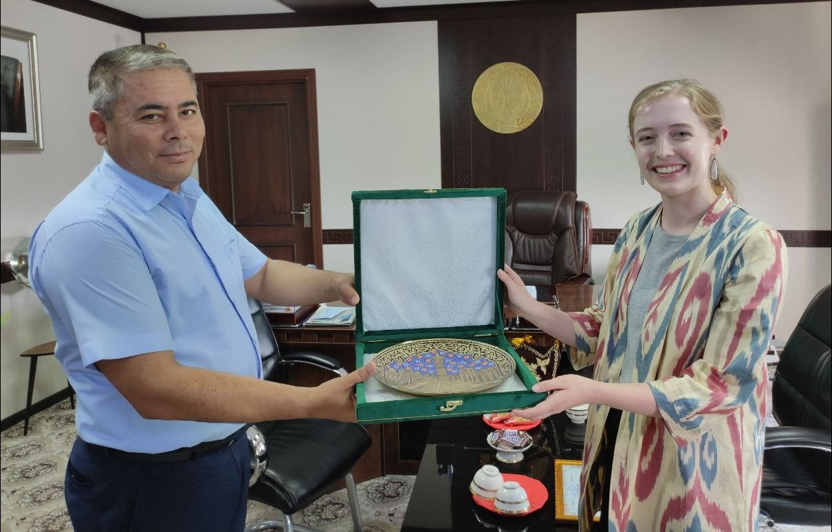 Учрашув якунида ўзбекона қадриятларимизга хос тарзда Ашлей Лане ҳамда Бухоро давлат университети ўқитувчиси Д. Хаджаеваларга туман ҳокимининг ташаккурномаси ва эсдалик совғалари топширилди.