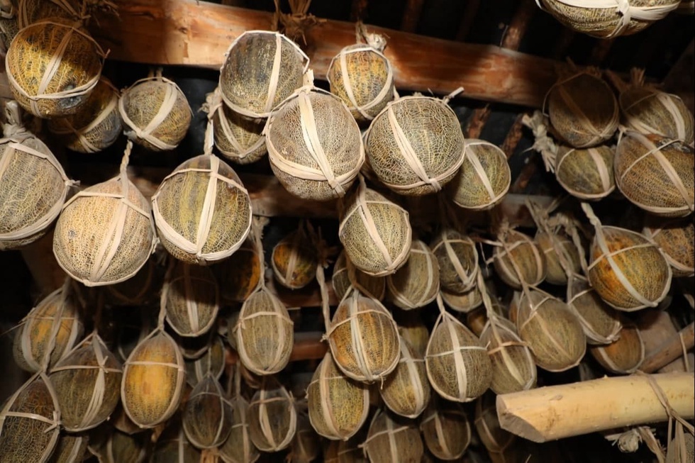 93 ёшли отахон Шамсиддин Исомиддинов ҳам меҳмонларни ўз уйга таклиф қилиб, хонадонда сақланаётган қовунларни кўрсатди.