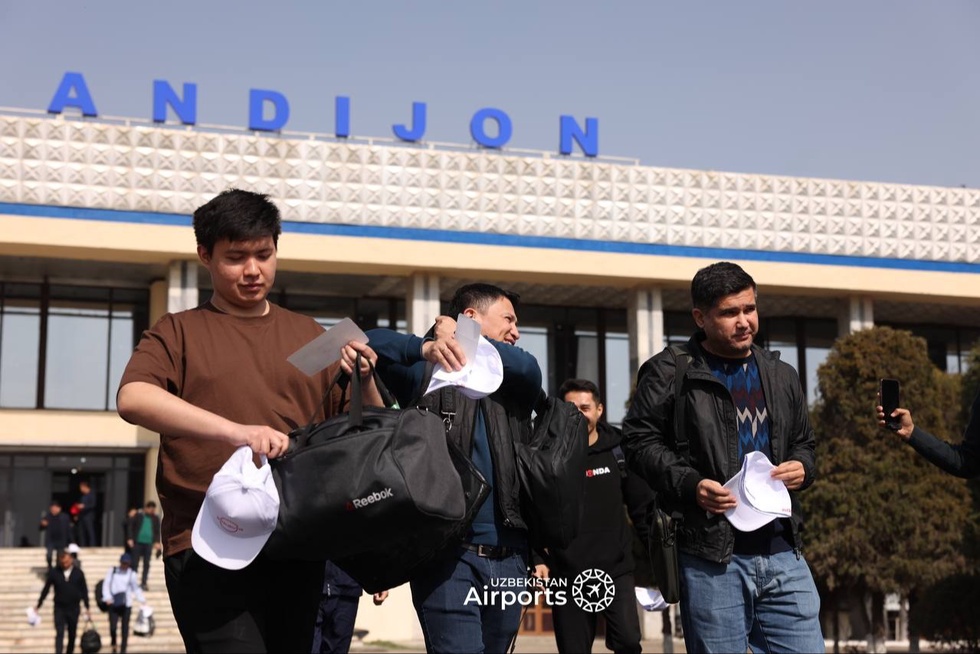 Анъанага кўра, самолёт сув аркаси билан, йўловчилар эса карнай ва сурнай садолари остида кутиб олинди.