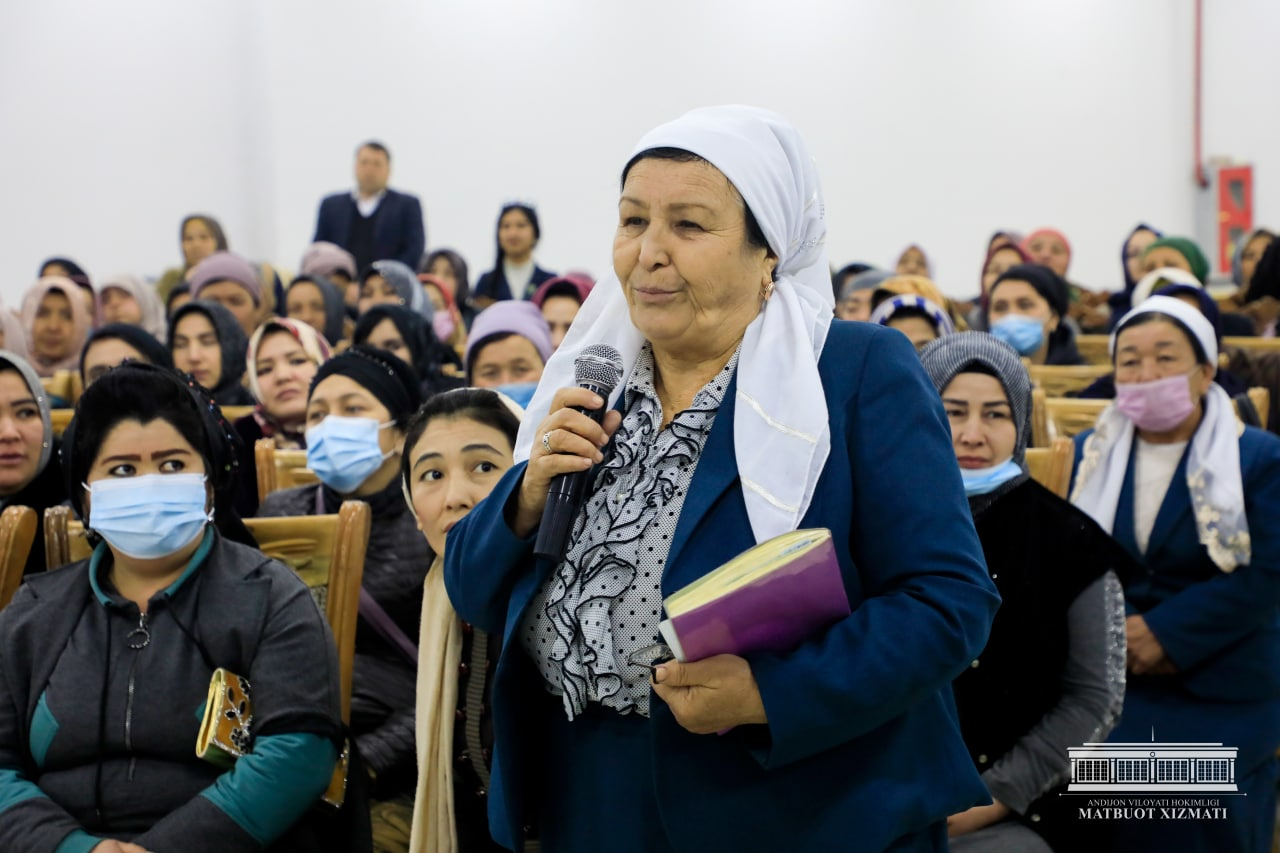 Мулоқот давомида хотин-қизларнинг турли масалалар юзасидан мурожаатлари ҳам шу ернинг ўзида ҳал этилди. Жумладан, вилоят соғлиқни сақлаш бошқармаси томонидан 15 нафар аёлга соғлигини тиклаши учун имтиёзли йўлланма берилди. Шаҳрихон туман ҳокимлиги эса қийин шароитда яшаётган 4 нафар аёлнинг уй-жойини ҳомийлик асосида таъмирлаб берадиган бўлди.