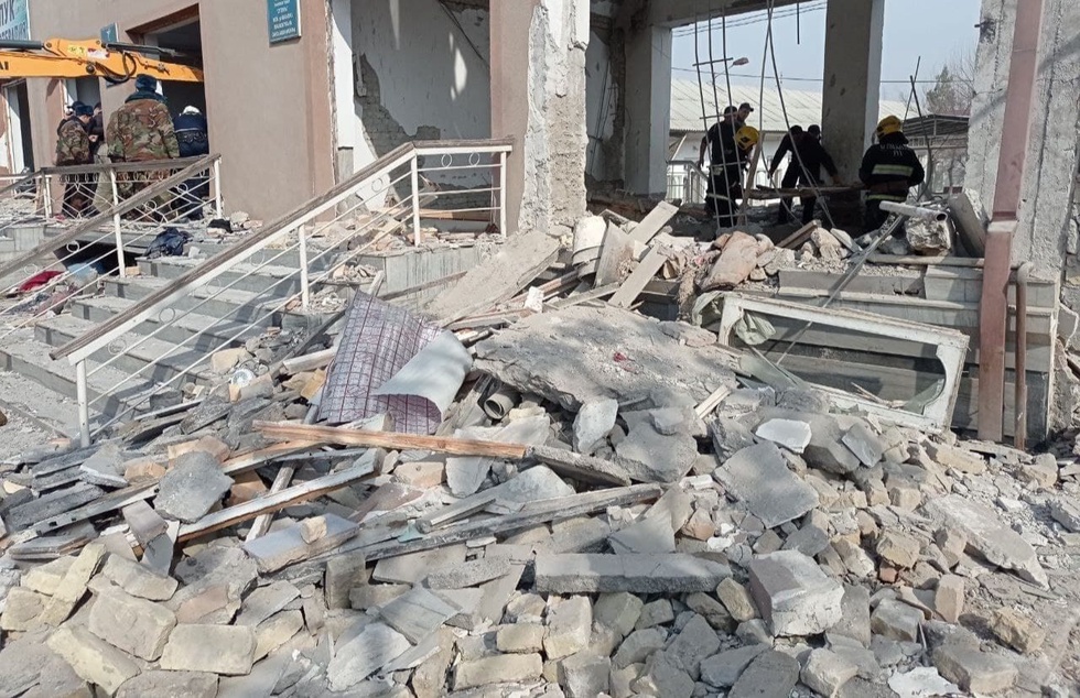 Юзага келган кинетик зарба натижасида бино деворларига шикаст етган.