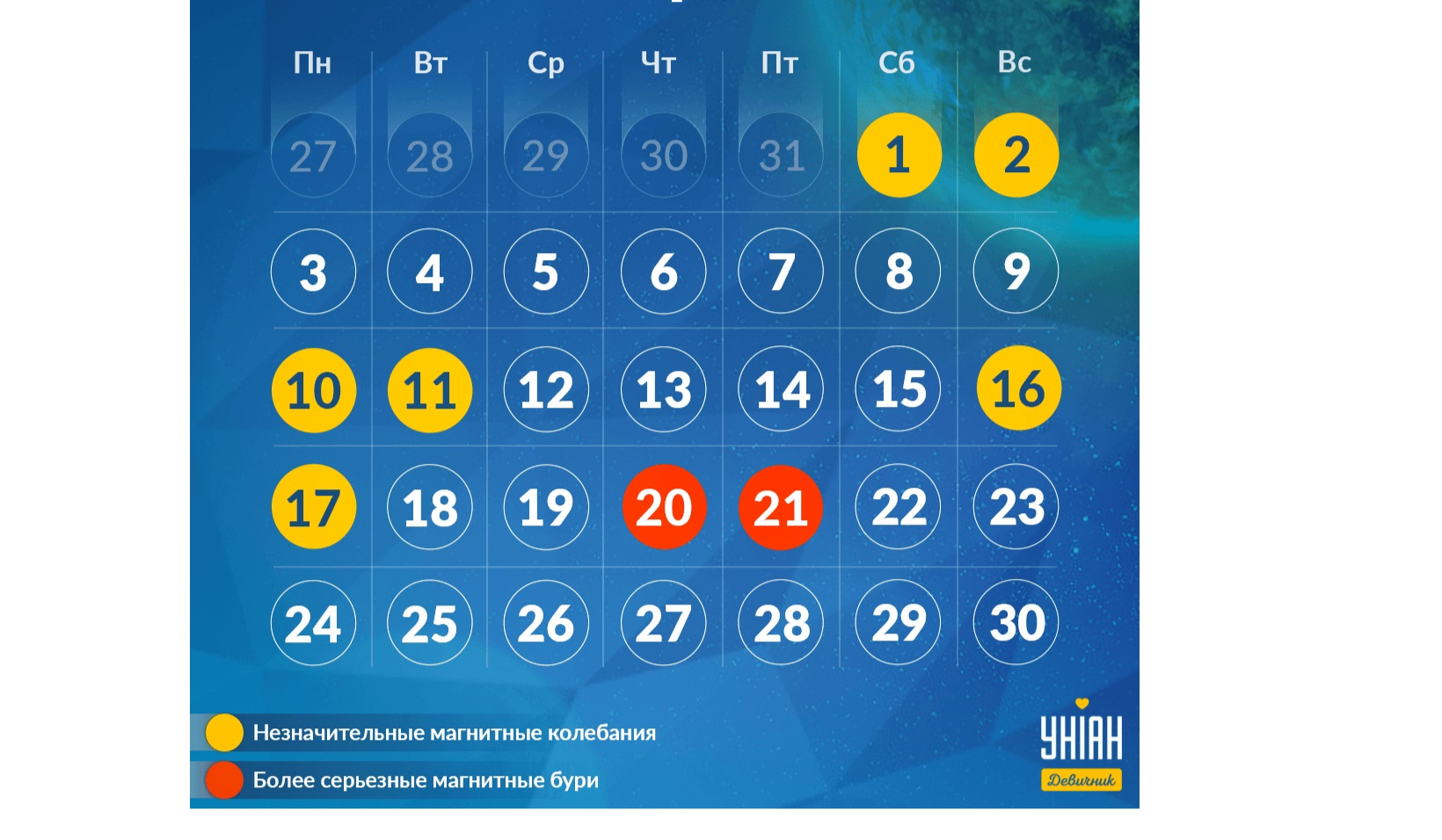 Ойнинг биринчи кунларида 1 ва 2 апрелда 4 балл қувватга эга заиф бўрон кутилмоқда. Худди шу кучнинг навбатдаги бўрони 10 ва 11 апрель кунлари бўлади. Кейин 16 ва 17 апрель кунлари ойнинг учинчи бўрони ҳам 4 балл билан кутилмоқда. Ойнинг охирги ва энг кучли магнит бўрони 20 ва 21 апрель кунлари прогноз қилинмоқда - унинг кучи 6 баллга этади.