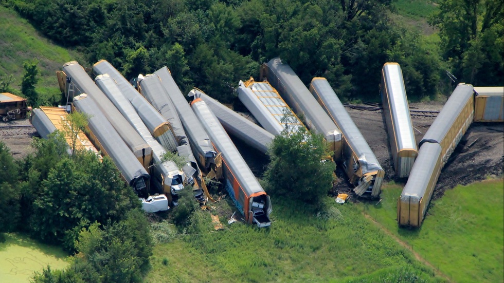 АҚШнинг Миссури штатида поезд таркиби рельсдан чиқиб кетиб, ҳалокат юз берди. Ўнлаб вагонлар ағдарилиб кетиши оқибатида вагонлар ичида олиб кетилаётган янги Ford F-150 пикаплари ҳамда Transit юк ташиш автомобиллари зарар кўрди, дейилади autocentre.ua сайтида.