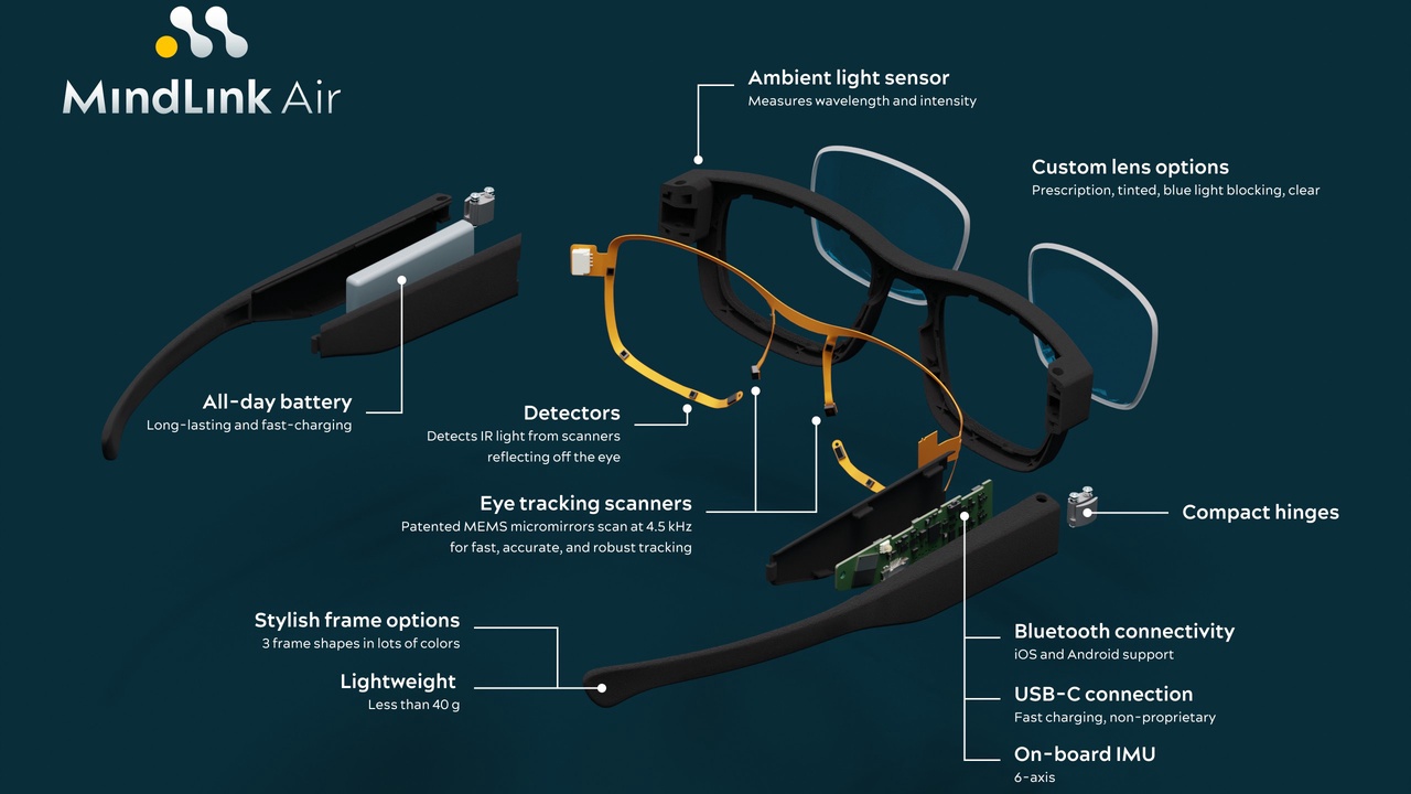 "MindLink Air" кўзойнаклари фойдаланувчининг чарчоқларини аниқлайди сўнгра кўзларга инфрақизил нурни қўллашни бошлайди ва мияга импульс юборади. Бу бирон бир вазифа бажараётганда иш жараёнида самараликни ва эътиборни оширади.