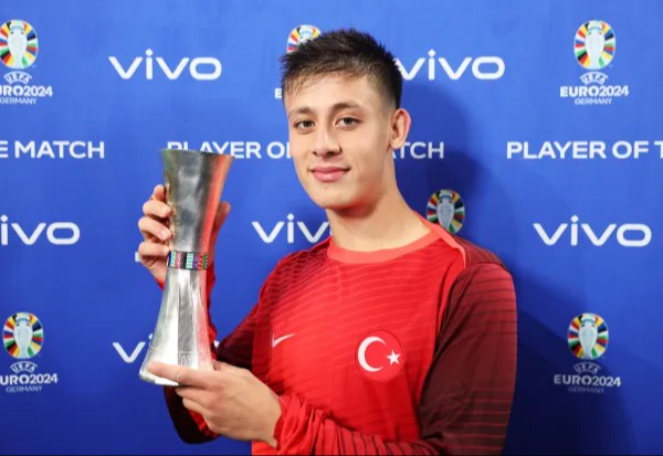 Турк футболчиси Европа чемпионатида 19 ёшу 128 кунлигида илк голини урган португалиялик юлдуз Криштиану Роналдудан ўзиб кетди. Криштиану буни Евро-2004 да Греция билан ўйинда амалга оширган эди, деб хабар беради tengrisport.kz.