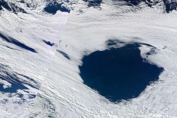 Марказида босим 1035 гПа га тенг антициклон нафақат бу икки ҳаво тўлқинларини бирлаштирмади, балки думалоқ бўшлиқдан иборат ғайритабиий манзара ҳам ҳосил қилди. NASA нинг Terra-MODIS сунъий йўлдошлари бу ҳодисани тасвирга олишга муваффақ бўлди.