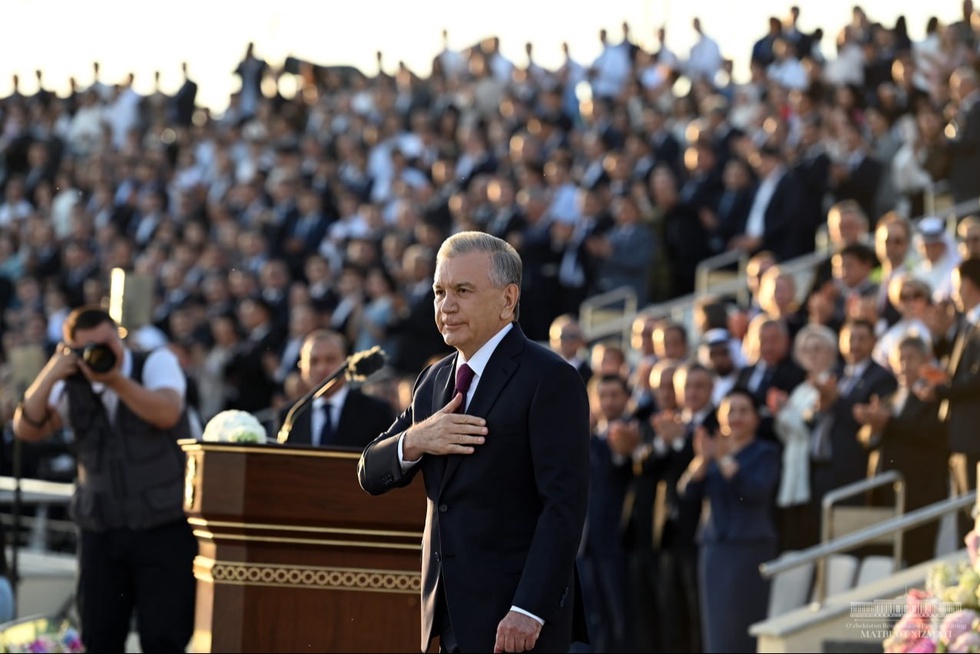 Маросимда Ўзбекистон Республикаси Президенти Шавкат Мирзиёев нутқ сўзламоқда.