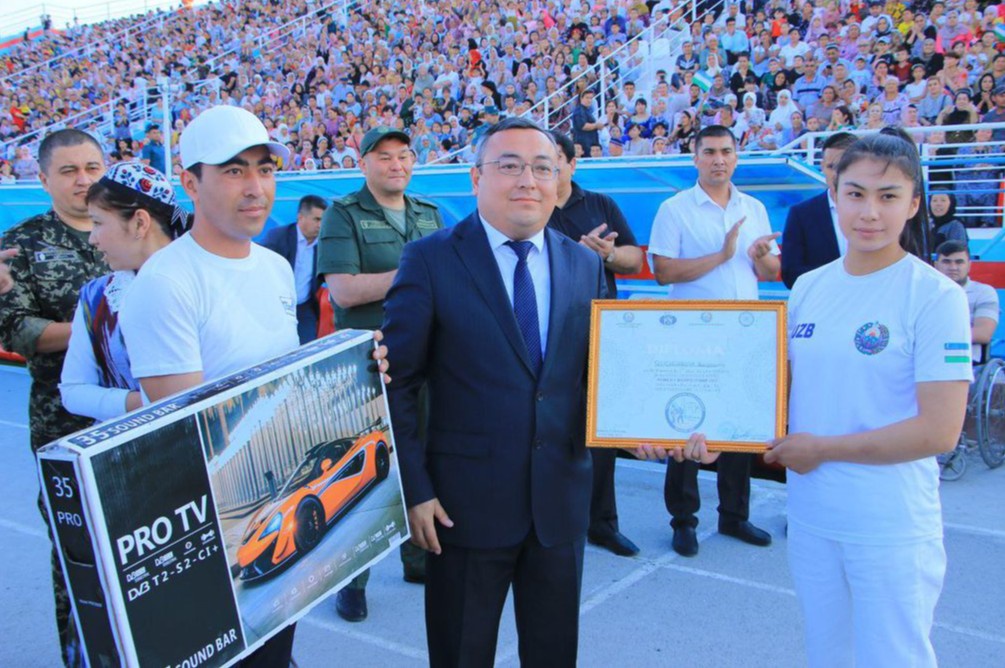 Ушбу байрам тадбирида “Беш ташаббус олимпиадаси” доирасида ўтказилган кўрик-танловлар ҳамда спорт мусобақалари ғолиблари бўлган йигит-қизлар, фаол ёшлар ва ҳарбийлар ҳам иштирок этди. Ушбу кўрик-танлов ва спорт мусобақаларида тумандаги барча маҳаллалардан қарийб 25 мингдан зиёд ёшлар қамраб олинди, улардан ғолиб ва совриндор бўлган 300 нафардан зиёд йигит-қизлар эътироф этилди.