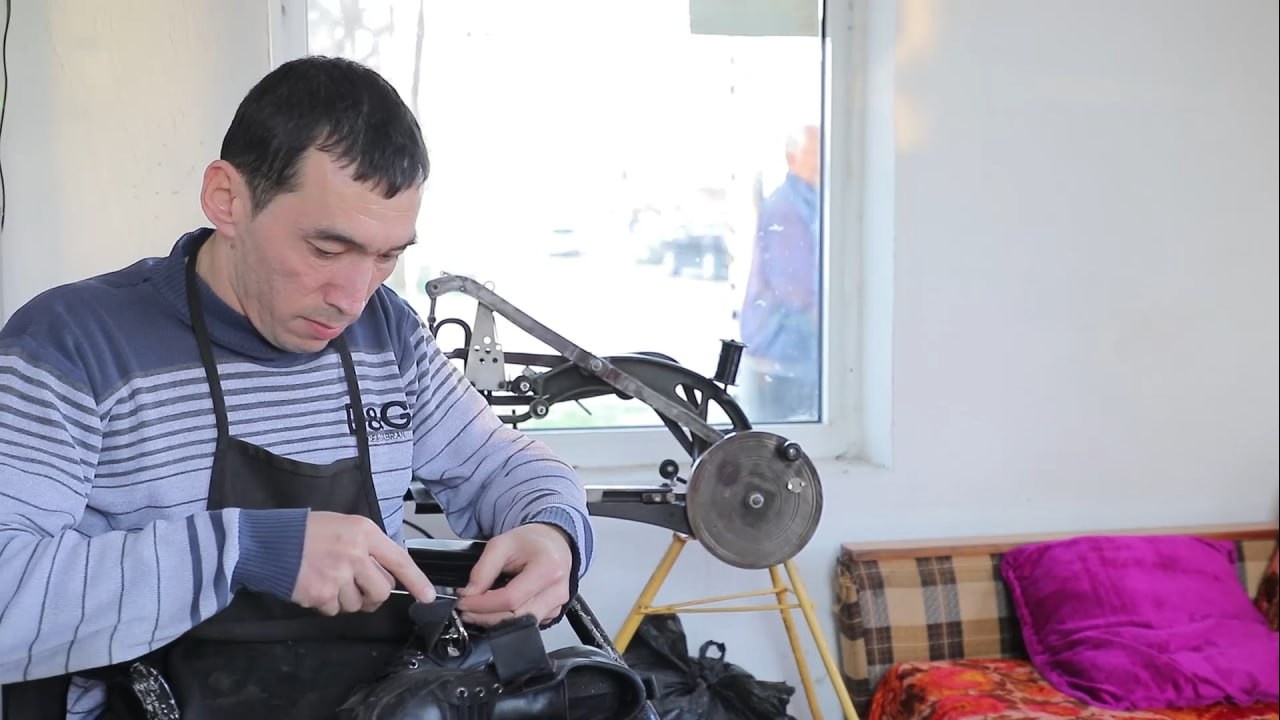 Қаҳрамонимиз яшайдиган Тараққиёт маҳалласи ички кўчаларидан ўтиб, йўл четидаги кичкинагина косиблик дўкони олдида тўхтадик. “Бу Маратнинг ишхонаси, у шу ерда ишлайди, уйидан бир километр олис, лекин  ёзнинг иссиғида ҳам, қишнинг совуғида  ҳам  ишини канда қилмайди”, деди ҳамроҳимиз.