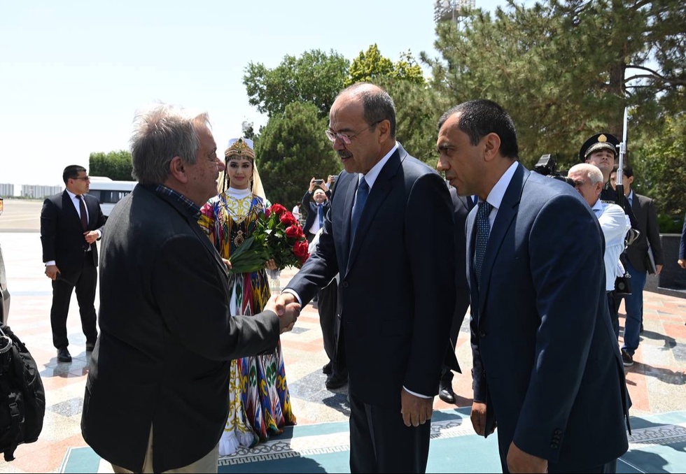 Қисқа суҳбатдан сўнг, БМТ Бош котиби Ўзбекистон Ташқи ишлар вазири ҳамроҳлигида ўзи учун ажратилган қароргоҳга жўнаб кетди.