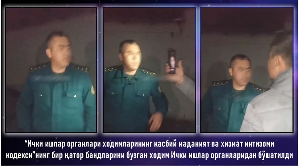 Ўрганиш ишлари давомида капитан Ж.Х.нинг Ички ишлар органлари ходимларининг касбий маданият ва хизмат интизоми кодекси ҳамда Ички ишлар органларида хизмат ўташ тартиби тўғрисидаги низомнинг бир қатор бандларини бузганлиги аниқланиб, ходим ички ишлар органлари хизматидан бўшатилди.
