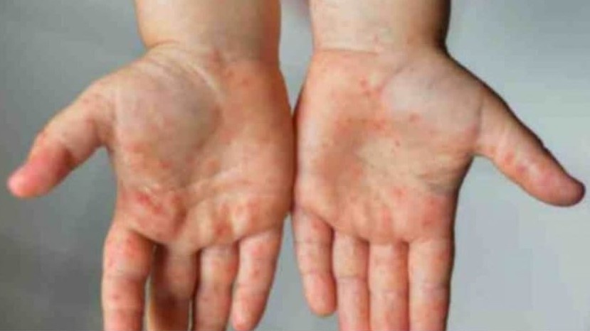 — танасида турли тошмалар тошиши кузатилиб, қўллар кафти ва товонлар териси кўчади.