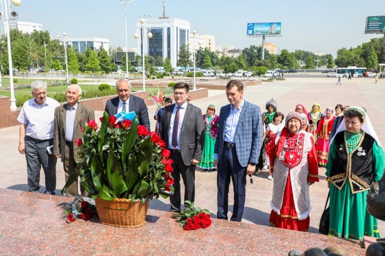 Ишлаб чиқилган юбилей дастурининг биринчи куни доирасида. Пойтахтимиздаги Халқлар дўстлиги майдонида Иккинчи жаҳон уруши йилларида турли миллатлардан бўлган 15 нафар етим болаларга бошпана берган Шомахмудовлар оиласи монументи пойига гулчамбар қўйиш маросими бўлиб ўтди. Ёдгорлик халқимизга хос дўстлик, олийжаноблик ва бағрикенглик тимсоли.