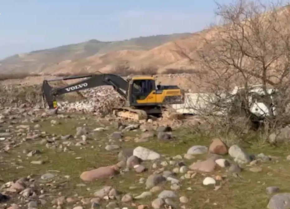 Ўтказилган рейд тадбирларида ,Бўстонлиқ туманида олиб борилган рейд давомида туман ҳудудидан оқиб ўтувчи “Оқсоқ ота“ сойи қирғоғида “Man” русумли автоулов эгалари экскаватор ёрдамида қум-шағал аралашмасини махсус рухсатномасиз қазиб олаётгани аниқланди.