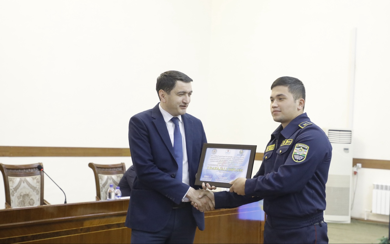 Тадбир якунида Академия курсантлари ўртасида «Ёрқин келажагимиз учун коррупцияга қаршимиз!» мавзусида ўтказилган иншолар танлови ғолиблари ташкилотчилар томонидан диплом ва эсдалик совғалари билан тақдирландилар.