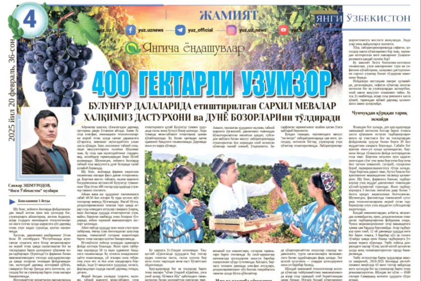 Шу боис, кейинги йилларда фойдаланишдан чиқиб кетган ерни яна ҳосилдор боғ, узумзорларга айлантириш, янгича ёндашув, аграр соҳадаги инновацион технологияларни ишга солган ҳолда каррасига кўп даромад олиш учун жадал суръатда, қизғин ишланмоқда.