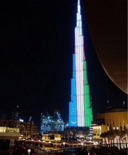 Мамлакатмизнинг Бирлашган Араб Амирликларидаги дипломатик ваколатхонаси маълумотига кўра, Ўзбекистон Республикаси мустақиллигининг 29 йиллиги муносабати билан Бирлашган Араб Амирликларининг Дубай шаҳрида жойлашган дунёнинг энг баланд иморати “Бурж Халифа”да Ўзбекистон байроғи 2020 йил 1 сентябрь куни Тошкент вақти билан соат 21:45да 1 минут давомида намойиш этилади.