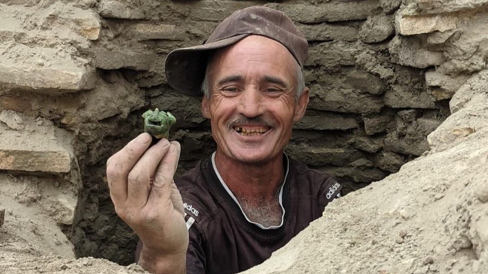 Тадқиқотчилар ноодатий сирланган яшил от шаклидаги болалар ўйинчоғини ҳам топишган.
